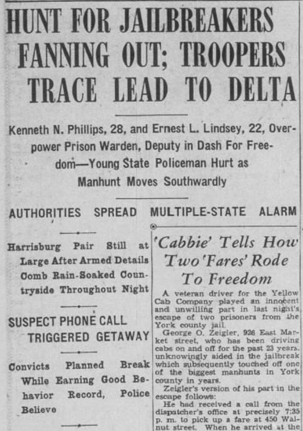 On Wednesday evening, June 8, 1955, two inmates at the York County Prison overwhelmed the prison warden and a deputy, and made their escape from the prison, fleeing and eluding authorities during a month-long multi-state crime spree before finally being captured. And the prisoners claimed that they had decided to escape from the prison because the food was "slop."